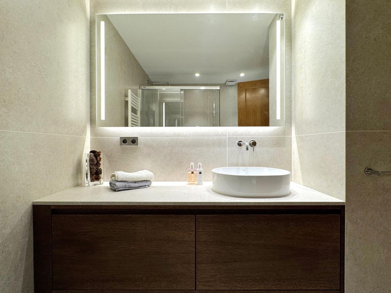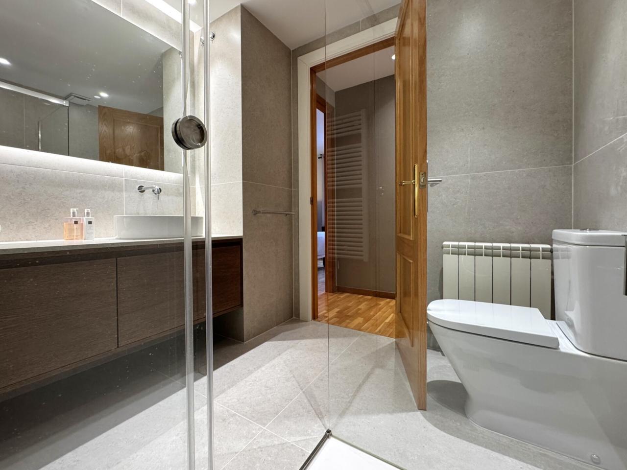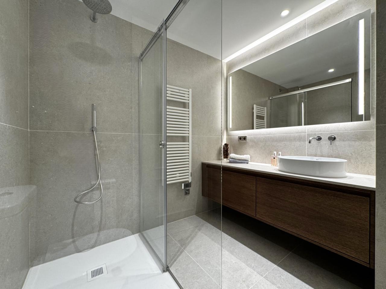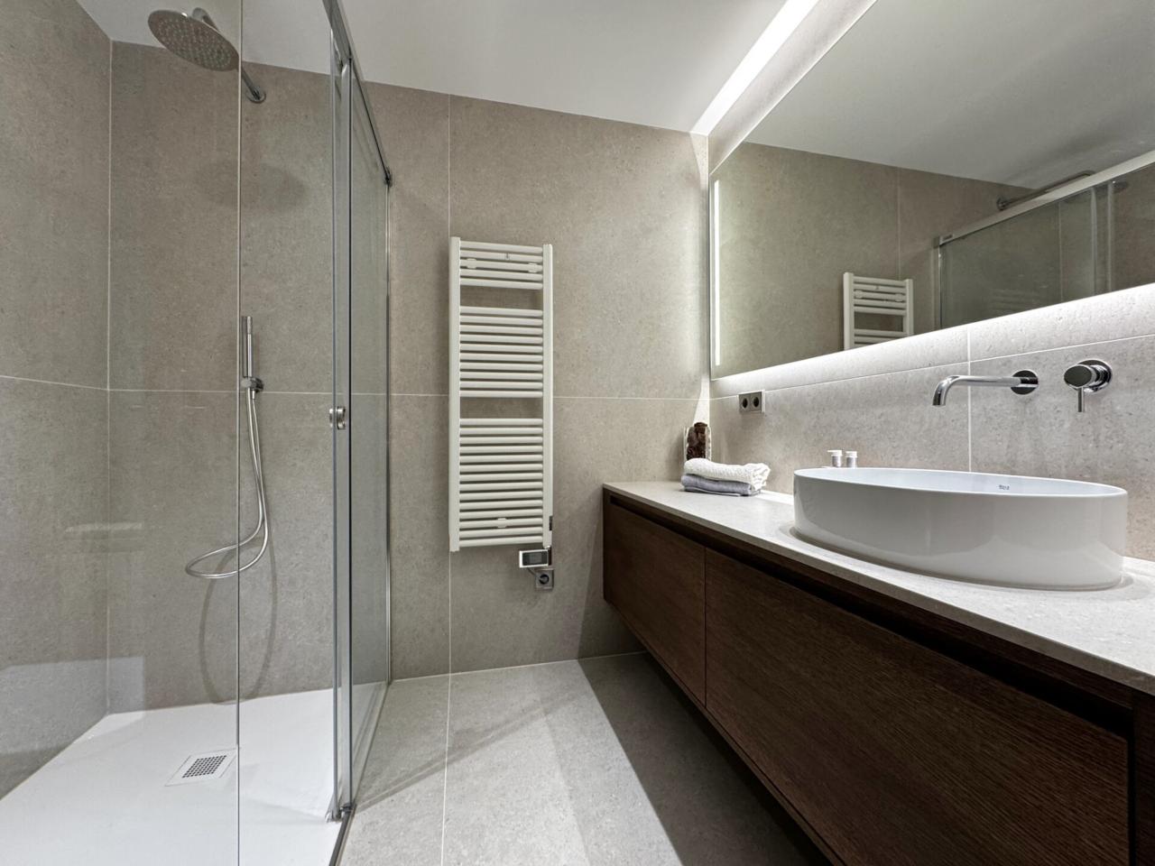 Un bany complet totalment reformat, amb gran plat de dutxa i acabats de qualitat,
