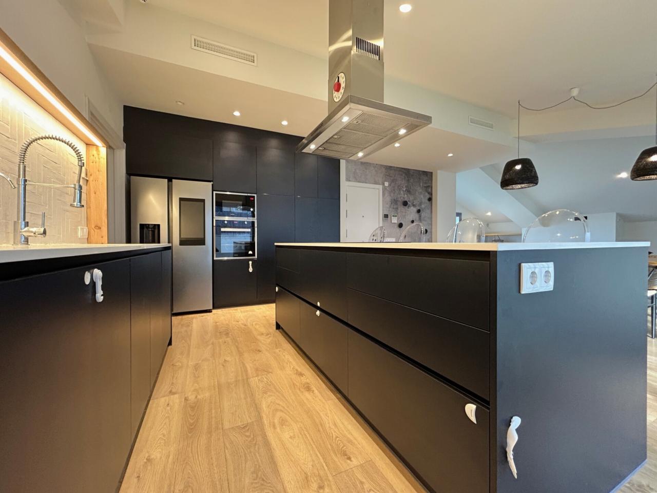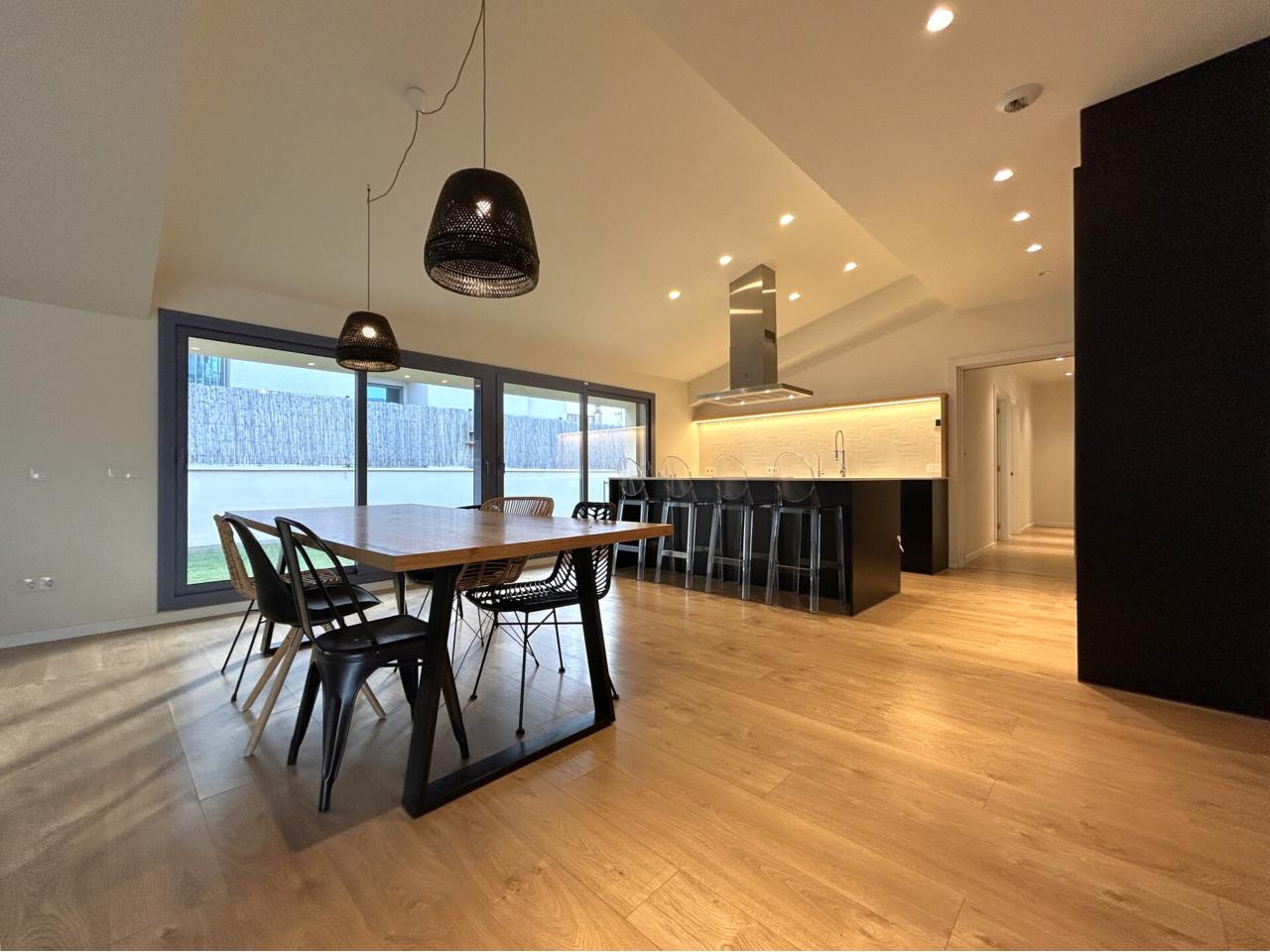L’interior és fruit d’una reforma d’autor, concebuda amb una sensibilitat especial pels materials, la llum i els detalls, on cada decisió respon a una idea clara d’estètica i funcionalitat. La zona de dia és completament oberta i s’articula com un únic gran espai fluid on cuina, menjador i sala d’estar conviuen sense límits visuals. La cuina, totalment equipada, s’organitza al voltant d’una elegant illa central que esdevé el centre funcional i social de la casa; darrere l’illa, connecta de manera natural amb el saló-menjador, afavorint una circulació còmoda i una manera de viure oberta i contemporània.