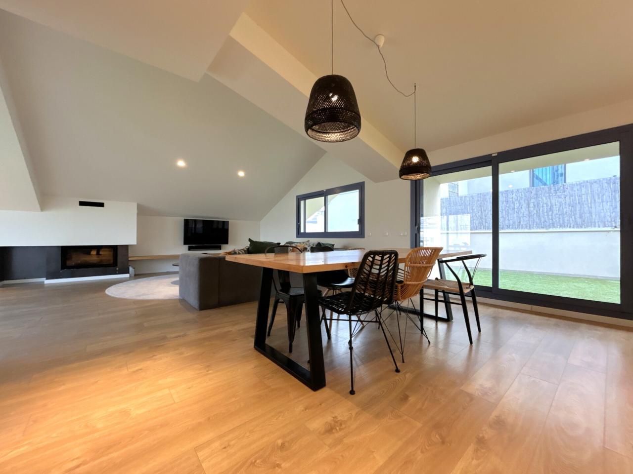 La sala d’estar, generosa i amb doble orientació, rep llum natural durant tot el dia i s’obre directament a les terrasses. La llar de foc integrada hi té un protagonisme indiscutible: més que un element decoratiu, és el cor de l’estança, aportant calidesa, atmosfera i aquella sensació d’acolliment que converteix qualsevol vespre en un moment especial.