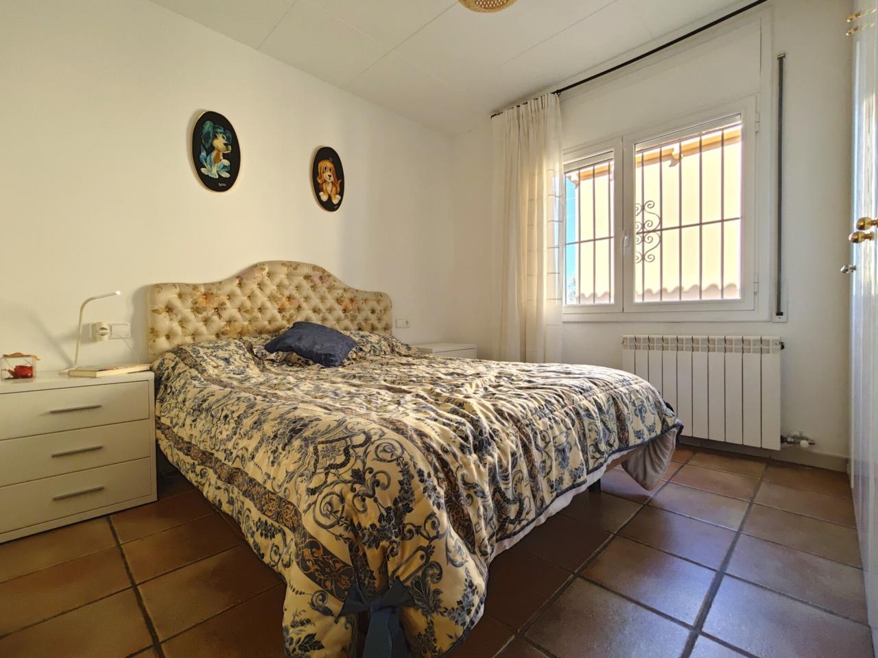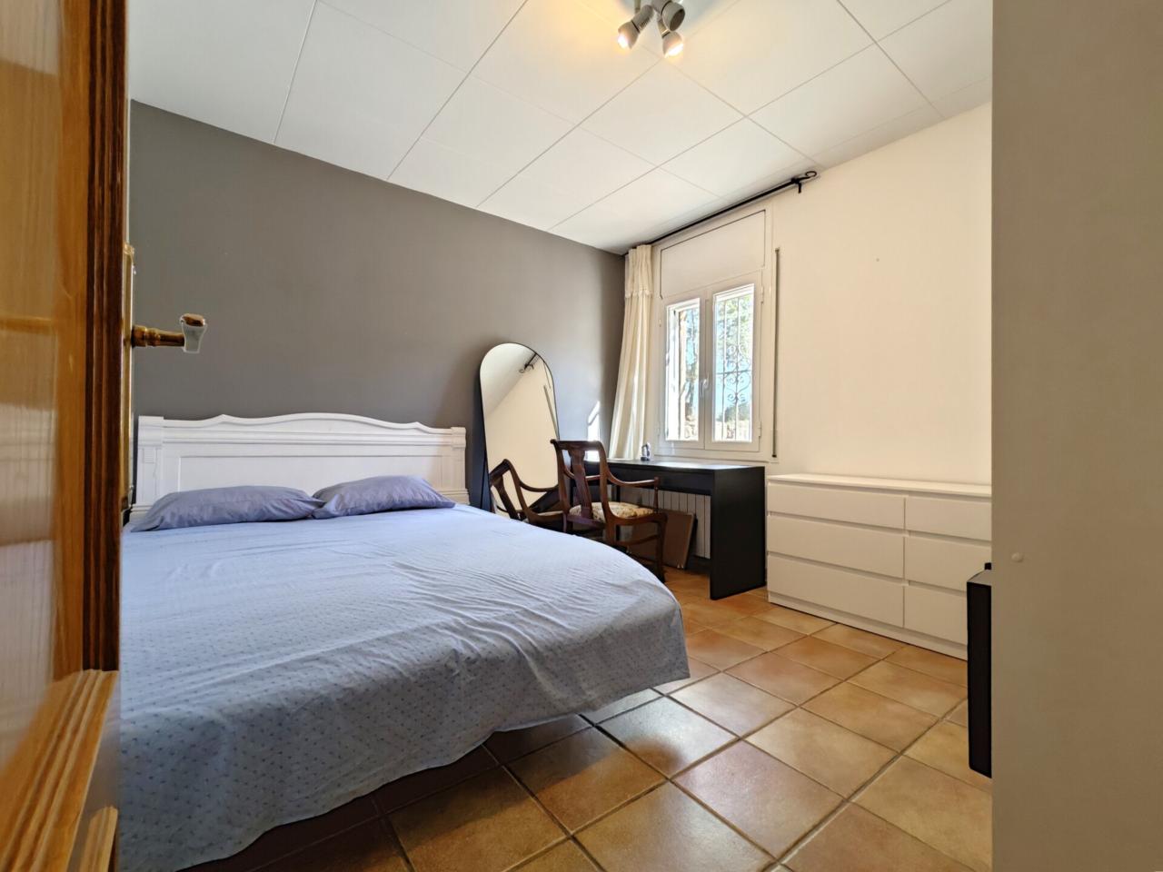 Un quart dormitori amb sortida directa al jardí, perfecte com a espai polivalent o habitació de convidats.