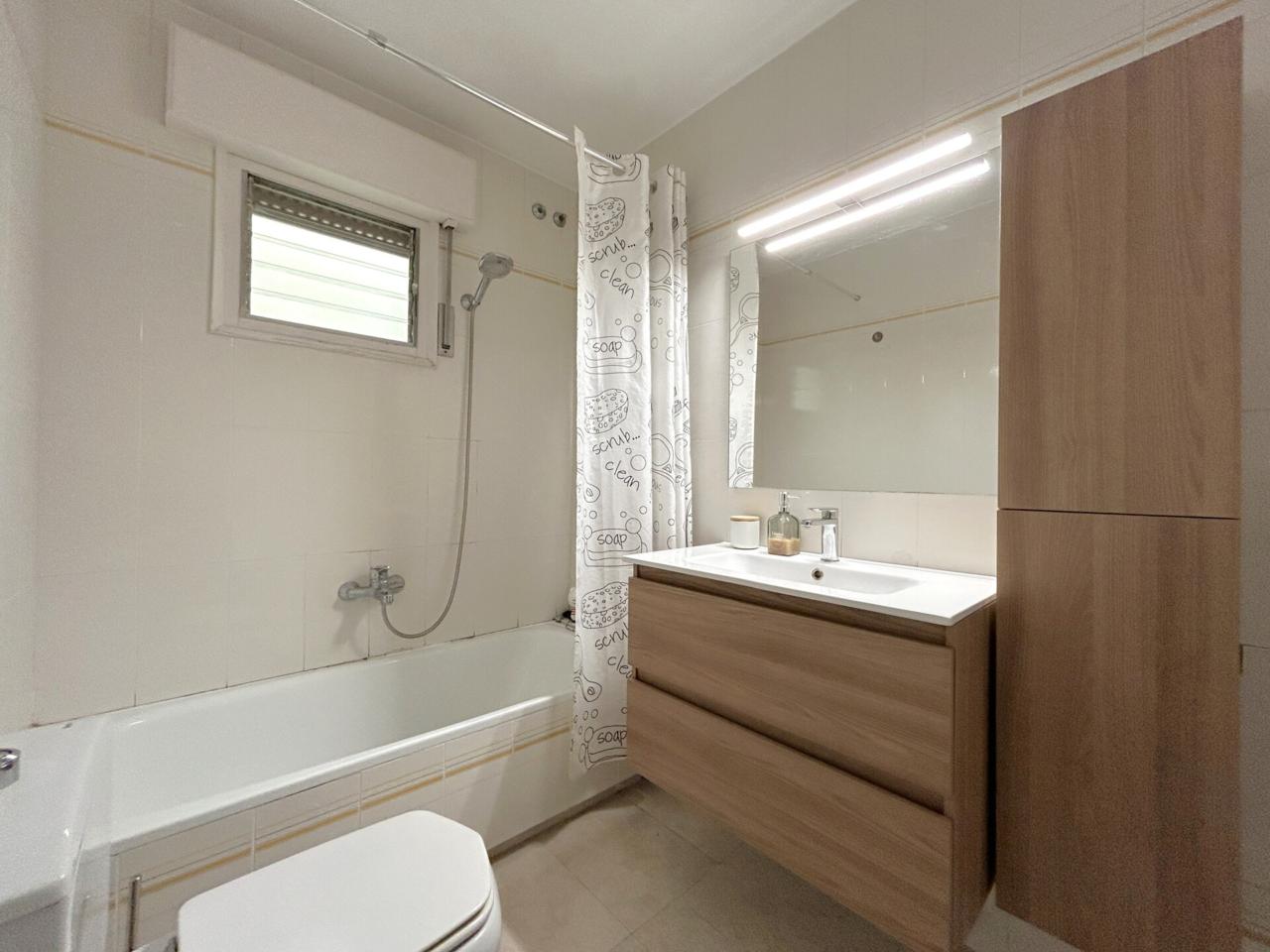 En aquesta mateixa planta trobem també un bany complet amb banyera, una habitació individual àmplia i una habitació doble amb aire condicionat i una sortida a balcó orientat a sud-est, que rep una llum natural especialment agradable.